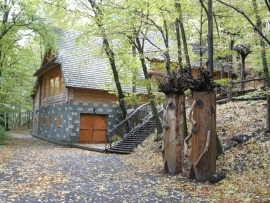 Ett sådant ställe är Koliba Veronika. Här är trädkonstnärens dröm och ett paradis för de små. Träd är figurer och själva stugan är snickeriglädje till 100 %. Det känns så slovenskt som det kan bli!