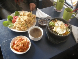 Kimchin finns i tre varianter, alla lika goda. En hel del blandad drycka tt välja på men deras "ginger, honey, lemon" te rekommenderas! Deras tunna glasnudelsallad ligger i toppen min favoritlista. Den glömmer jag inte.