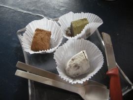 Som en liten dessert kunde vi inte motstå hans förslag om en liten choklad-frestelse. Det visade sig vara tryffel rullad i grönt te, kokos och choklad. Alla vid bordet nickade instämmande vid vårt första smakprov...because I'm worth it!