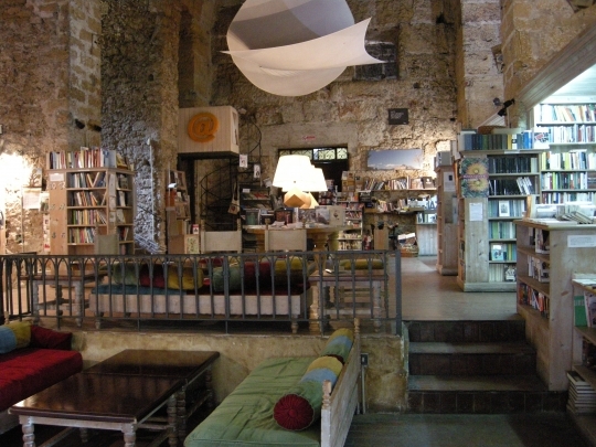 En enorm rymt finns i lokalen som är av tegel och mosaik. Här har man blandat en underbar mix av vin, kultur, musik och böcker. Atmosfären är bohemisk och du hör sköna rytmer av "Chill out" musik i högtalarna.
