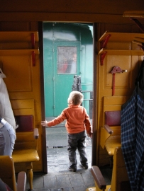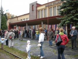 Vårt gamla ångtåg anländer till stationen. Den galna konduktören (läs skådespelare) leder ett gäng unga som i tidsenliga kläder gräver och hackar sig fram i jorden och visar hur det gjordes till vid byggandet. Tåget är snart fullt och under sakta mak tuffar vi fram till första stoppet och stationen, Kozelník. Här har konstnärerna med viss ironi valt ut texter från de kommunistiska hejarropen och satt upp på stationen. Omöjliga att helt översätta enligt mina slovakiska vänner men innebörden ter sig aningen galen idag.